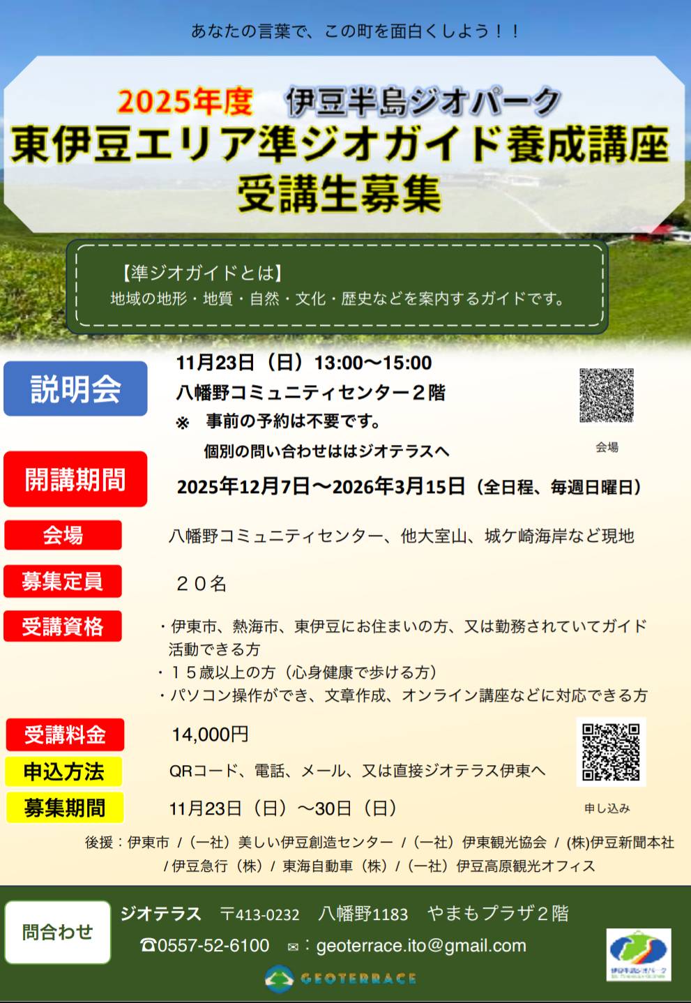 2025年度準ジオガイド養成講座開催のお知らせです。