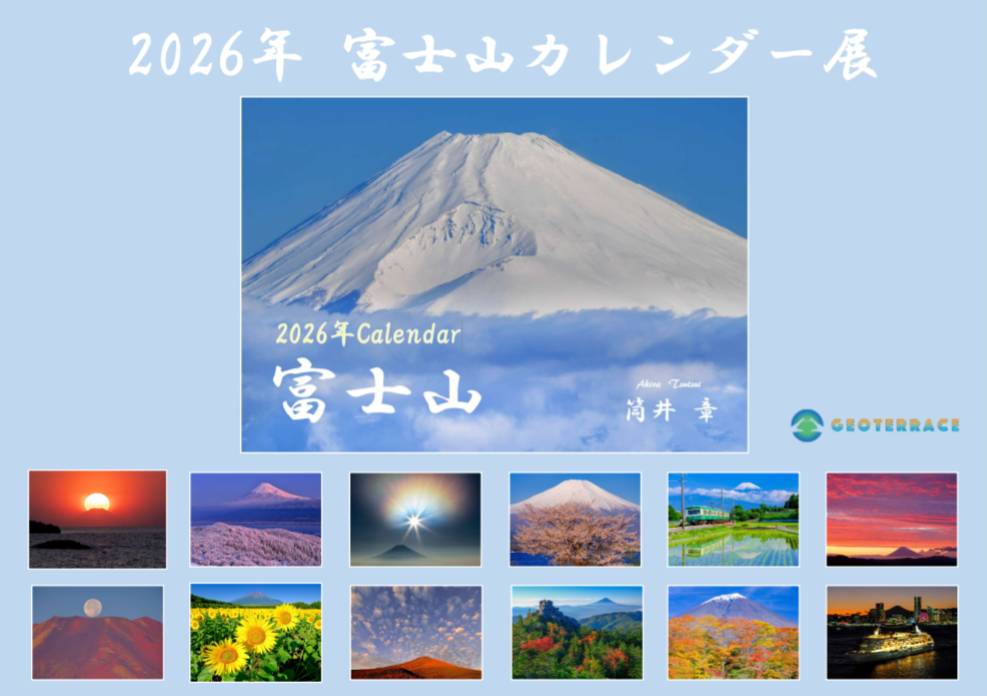 ジオテラスでは、年末年始の企画展示として、筒井章さんによる「富士山カレンダー展」を開催いたします。