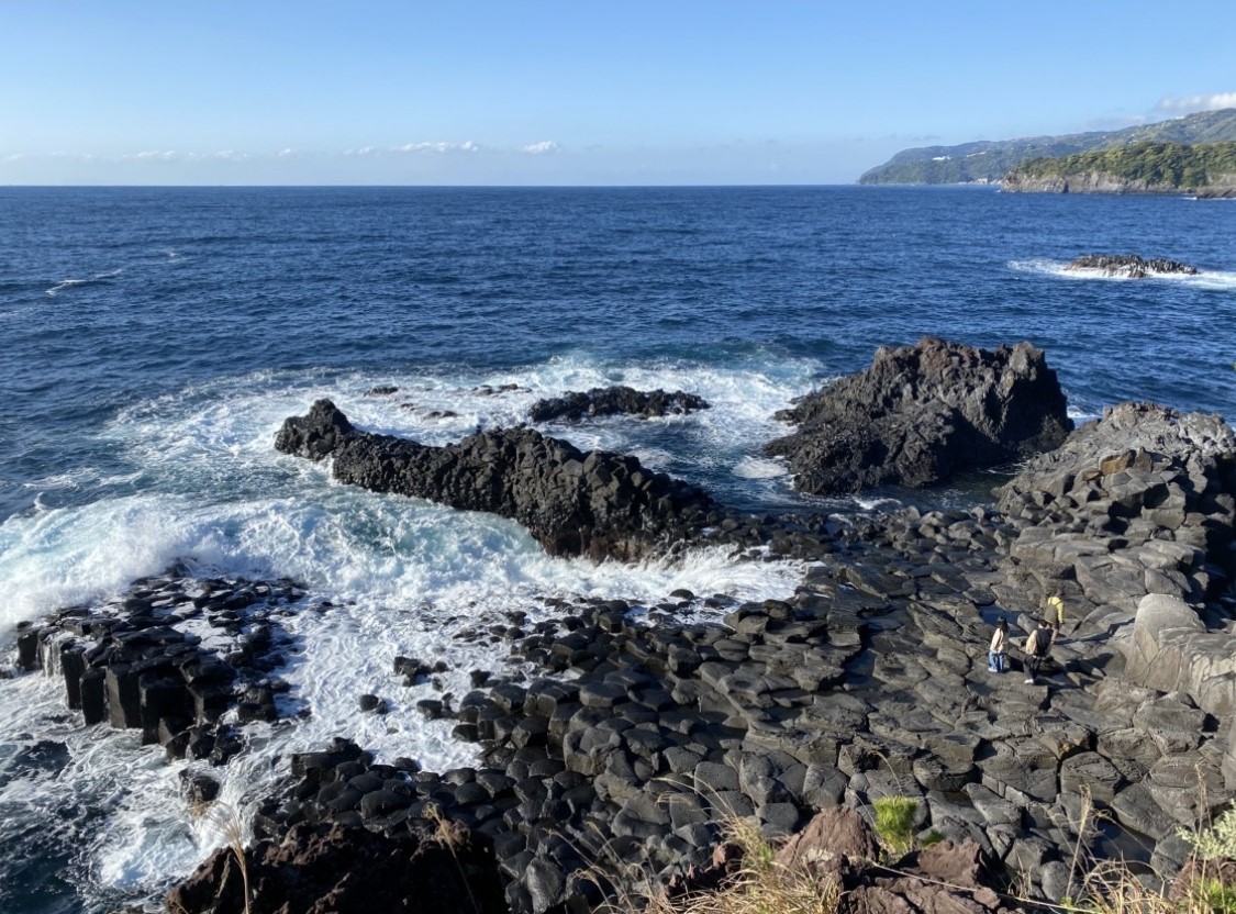 約4000年前にプレート運動により噴火した大室山。そこから流れ出た溶岩が海と出会い形成された城ケ崎海岸。その海岸線を端から端まで歩くウォーキングコースです。ゴツゴツした溶岩の上を歩きながら、そこに自生する植物、浸食・風化により様々な形に変化した岩石、躍動する台地が作った城ケ崎海岸を堪能できるスペシャルなコースです。外国人ウォーカーにも人気のジオサイトです。